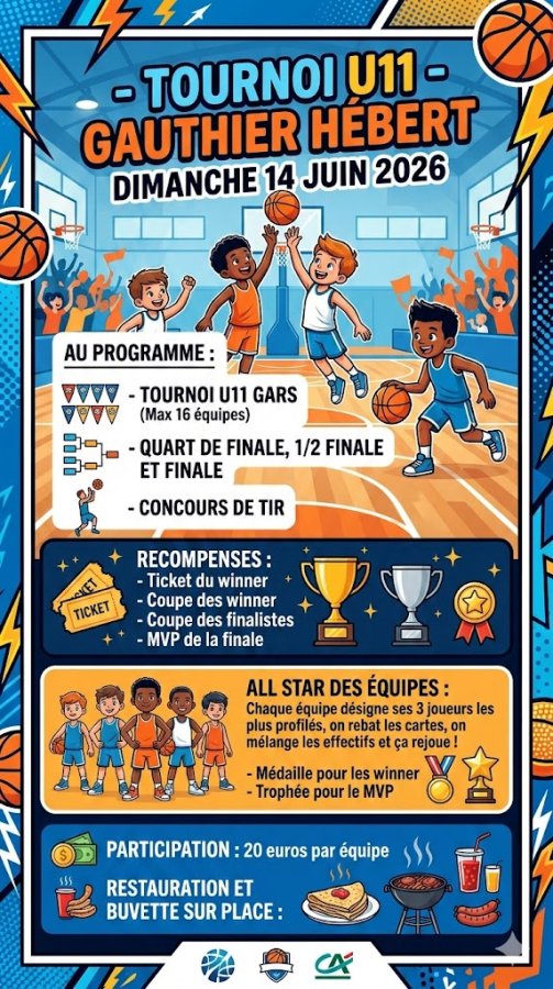 Le Tournoi U11 – Gauthier Hébert est un événement sportif dédié aux équipes U11 garçons, organisé dans un esprit de compétition, de convivialité et de valorisation des jeunes joueurs.